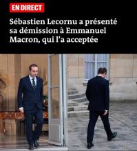 قدم الوزير الأول الفرنسي سيباستيان ليكورنو استقالته من منصبه، بعد نحو ثلاثة أسابيع من تكليفه من قبل الرئيس إيمانويل ماكرون. وحكومته لم تصمد سوى نحو 14 ساعة بعد إعلان تشكيلها رسميًا مساء الأحد.