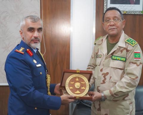 استقبل الفريق قائد الأركان العامة للجيوش، صباح الثلاثاء 9 سبتمبر 2025، الملحق العسكري الجديد المعتمد بسفارة دولة الإمارات العربية المتحدة في نواكشوط والمقيم بالمملكة المغربية، العقيد الركن فهد ضاحي حميد النعيمي، يرافقه مساعده الم