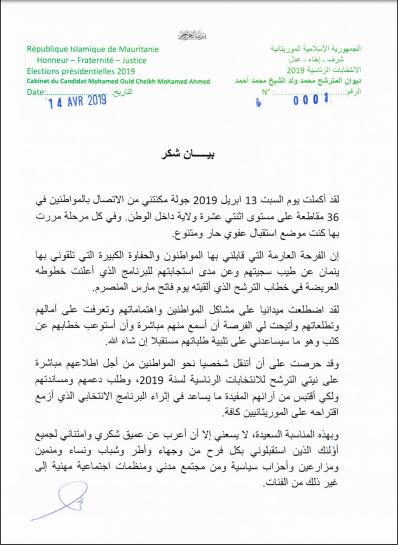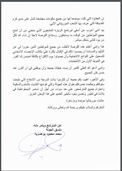 حرية ميديا : أعلن نائب رئيس حزب تكتل القوى الديمقراطية أكبر الأحزاب المعارضة في موريتانيا الأستاذ محمد محمود ولد امات استقالته من الحزب في رسالة موقعة بعثها إلى الرئيس أحمد ولد داداه