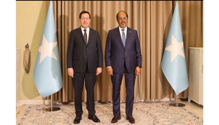 قدم سعادة السفير الحسين سيدي عبد الله الديه، اليوم الثلاثاء بالقصر الرئاسي بمقديشو، أوراق اعتماده لفخامة السيد حسن شيخ محمود، رئيس جمهورية الصومال الفيدرالية، بوصفه سفيرا فوق العادة وكامل السلطة للجمهورية الإسلامية الموريتانية لدى