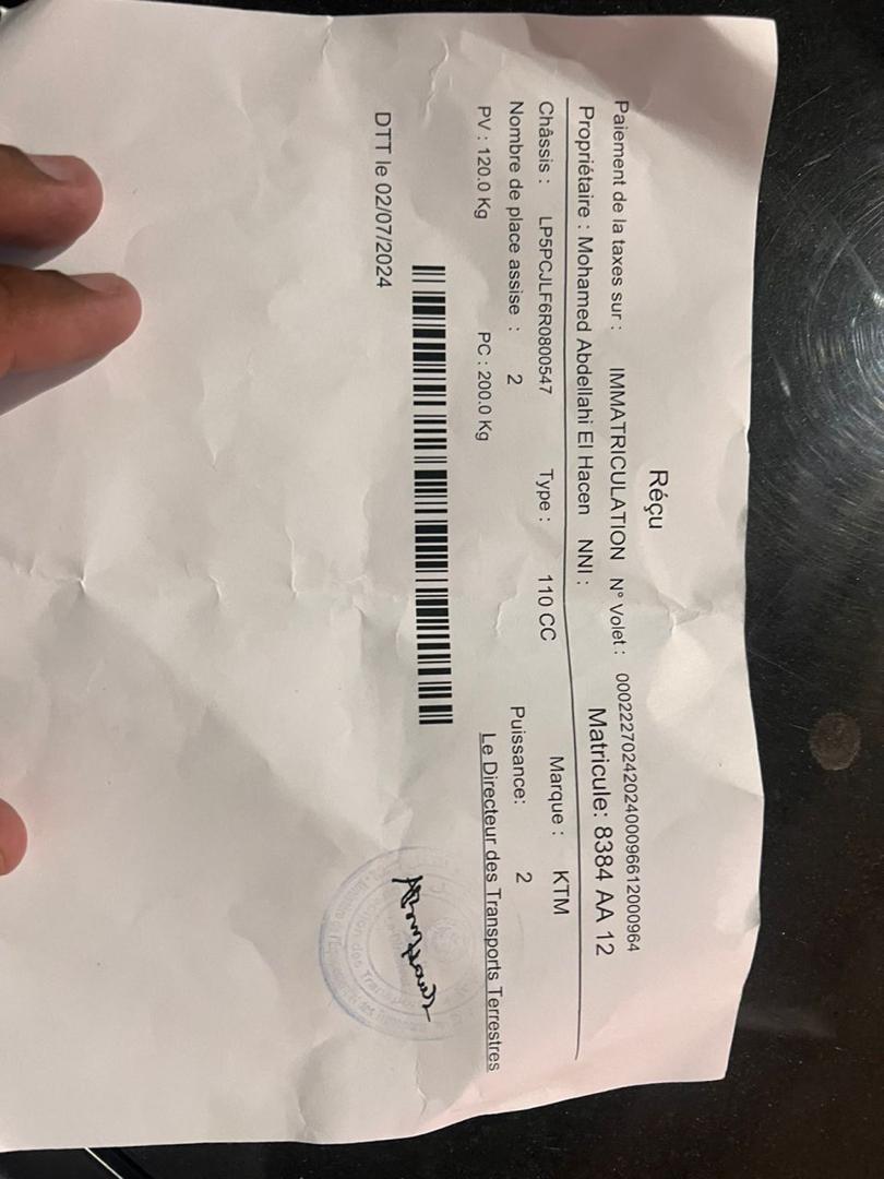 يذكر ان الدراجة النارية المذكورة مستوفية كافة الإجراءات القانونية التي أقرتها الوزارة مؤخرا.