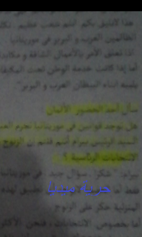 ثم أردف قائلا  " المدعو  بيرام أنتم قلتم  إن الزنوج هم الأكثرية في موريتانيا هل كان الزنوج معكم؟ ولماذا لم تنجحوا في الانتخابات الرئاسية؟" فرد عليه العنصري بيرام بالقول:  إن في موريتانيا قوانين لتجريم العبودية لكنها من أجل إرضاء الأوروبيين فقط (ناسيا أو متناسيا أن موريتانيا حاربت العبودية، وسنت القوانين المتعلقة بتجريم الرق) وبخصوص الانتخابات فنحن الأكثرية- حسب زعمه- وكأن بيرام يحسب نفسه زنجيا..