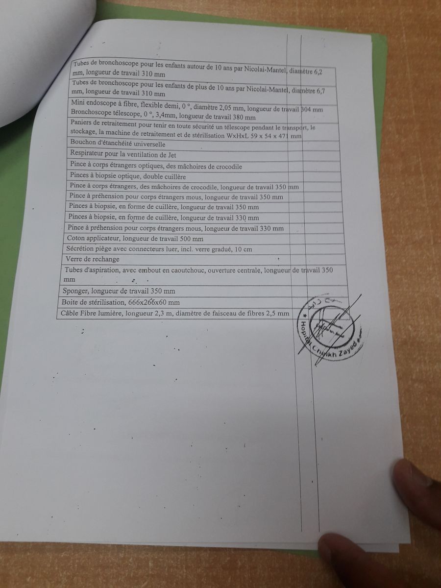 الجهاز المتطور تم أقتناءه من طرف ادارة مستشفى الشيخ زايد سنة 2015، عن طريقة مناقصة تمت فيها مراعاة الشفاية (انظر الوثائق) التي تحصلنا عليها من ادارة المستشفى ، حيث تثبت ان شركة "كاميك" من خلال مؤسسة "الخير" التي هي الممثل الوحيد للشركة الألمانية المصنعة للجهازويعمل الآن بشكل طبيعي مصحوبا بجميع قطعه المشغلة في جناح غرفة العمليات" بمستشفى الشيخ زايد، ويسهر فريق فني على صيانته في غرفة العمليات ، حرية ميديا تعتذر لقرائها عن المعلومات المغلوطة التي قدمت لها والتي تقول ان الجهاز غير موجود اصلا في المستشفى الشيء الذي يجافي الحقيقة ، حيث تمكنا من الوصول اليه وفي وضعه الطبيعي (الصورة)