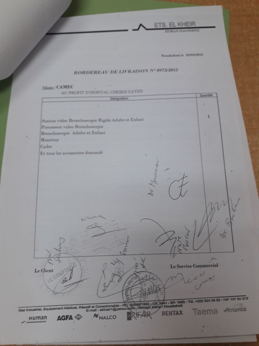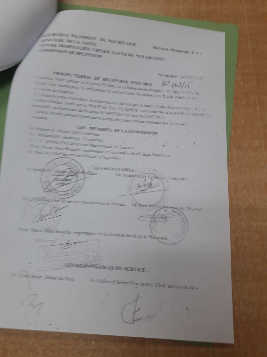 تمكن موفد حرية ميديا صباح اليوم 2018 /02 24 من زيارة مستشفى الشيخ زايد، حيث أطلع عن كثب على حقيقة الجهاز Vidéo bronchoscopie rigide adulte et enfant ،الذي يعتبر الأول من نوعه منذ نشأة الدولة الموريتانية كماأكد على ذلك الدكتور محمد ولد أعلي اخصائي الانف والاذن والحنجرة ، في لقاء حصري خص به موقع ّحريه ميديا" حيث قال ان الجهاز المذكور يتوفر على مواصفات نوعية فهو جهاز متكامل يحمل كل الخصائص المطلوبة ، ويعالج ، النزع عن طريق القصبة الهوائية ، ونزع اورام الجيوف الانفية ، وإجراء عمليات بالمنظار ، واستأصال غدد لبروستات بدون شق ، فحص المثانة ، أستئصال الغدة النخامية من دون جراحة ، ويتدخل في في تشخيص القصبات الهوائية والبلعوم بسهولة و خاصة عند الاطفال ..شىء تشخيصي وعلاجي ، ....الخ