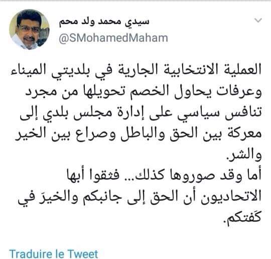 كتب ولد محم تغريدة فرد جميل بتدوينة وهاهما: