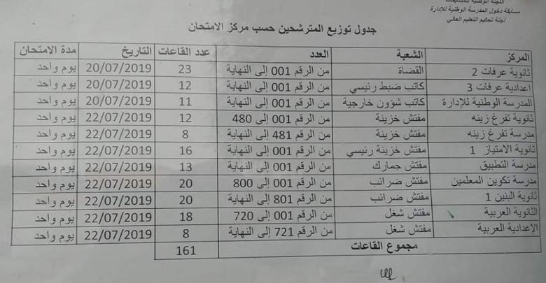 وبإمكان الراغبين في الاطلاع على أماكن إجراء الامتحان مطالعة الصورة أعلاه التي توضح توزعة المتسابقين على دفعات انطلاقا من أرقام أوصال الترشح التي سلموا بعد تقديم ملفات ترشحهم.