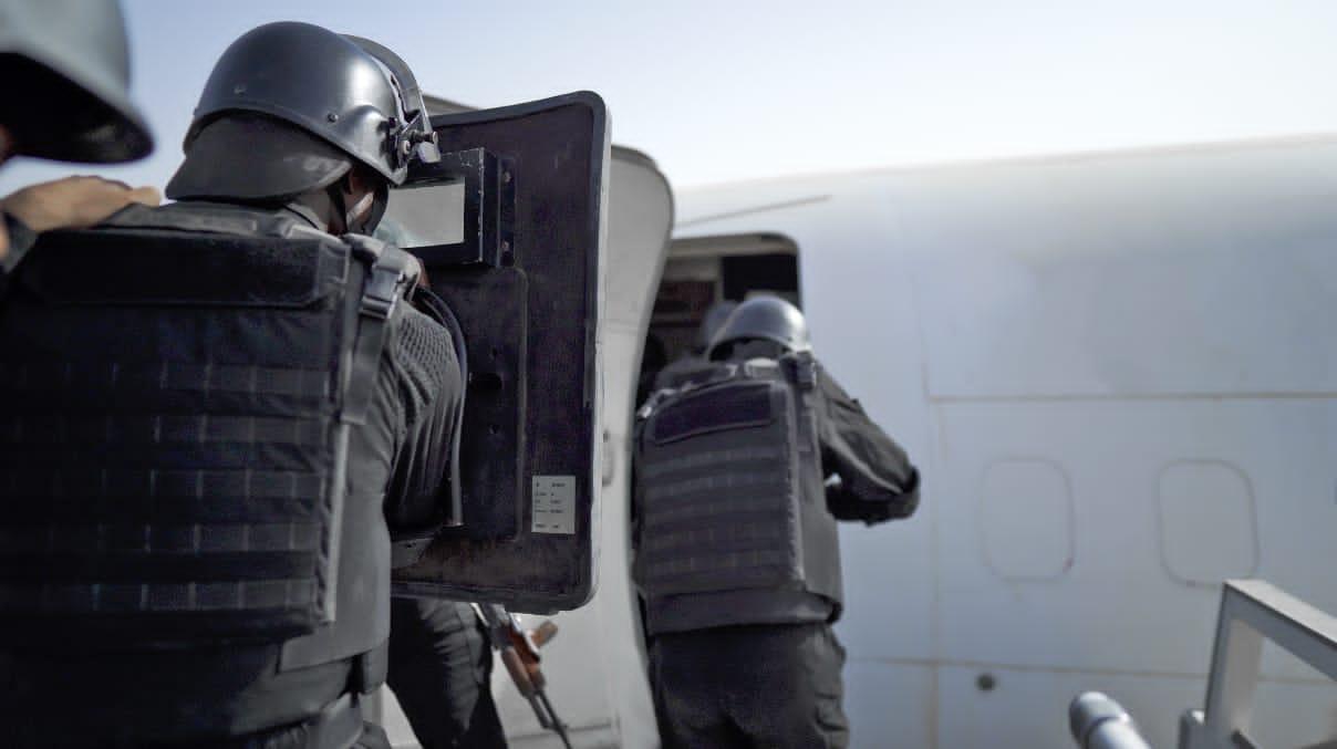 ومن بين تلك التمرينات محاكاة عملية إنهاء اختطاف طائرة ركاب بأسلوب يجمع بين السرعة في التحرك ومراعاة الحرص على حياة الركاب لتنتهي العملية بنجاح باهر.