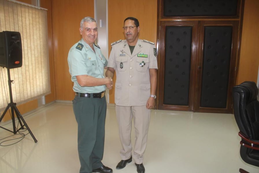 حرية ميديا : إستقبل السيد اللواء عبد الله ولد أحمد عيشه قائد أركان الدرك الوطني بمكتبه يوم 17 نوفمبر2021 السيد الفريق أفرانسيسكو أسباداس سانتانا مدير مشروع مجموعة الرد السريع والمراقبة والتدخل في الساحل حيث تناولت المحادثات التعاون بين قيادة الدرك الوطني وإدارة المشروع وسبل تعزيزه.